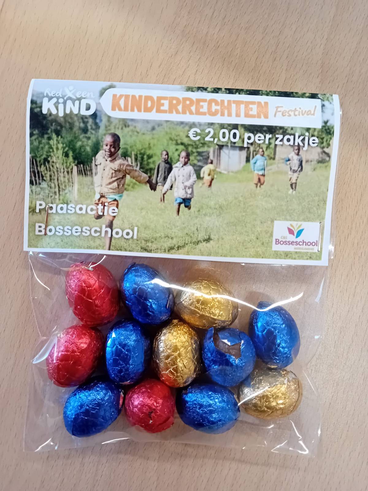Op maandag 23 maart krijgt het oudste kind uit ieder gezin vijf zakjes paaseitjes mee naar huis. De kinderen mogen deze verkopen aan familie, vrienden, buren of anderen in hun omgeving.
